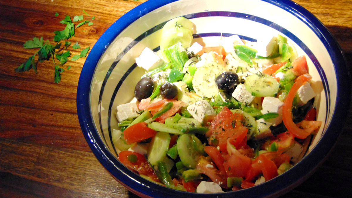 Der griechische Name des auch als Greek Salad bekannten Salates ist Choriatiki salata.